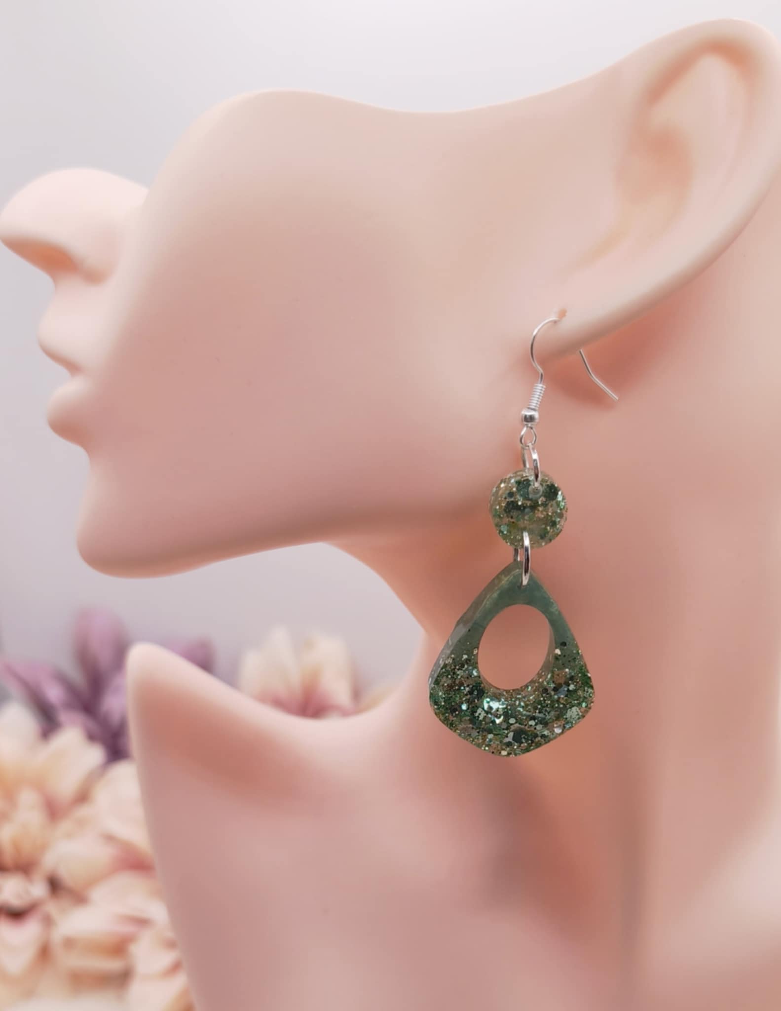 Ces boucles d’oreilles aux nuances vert émeraude évoquent la richesse et le mystère des gemmes naturelles. Leurs reflets scintillants captent la lumière à chaque mouvement et illuminent subtilement le visage 💚