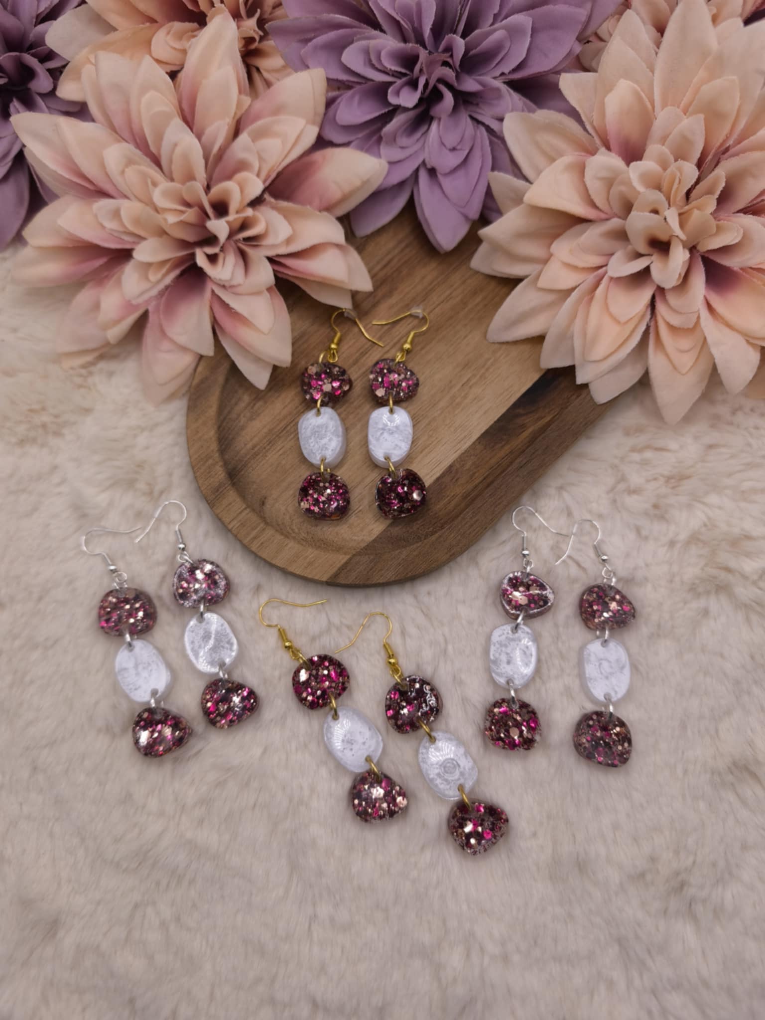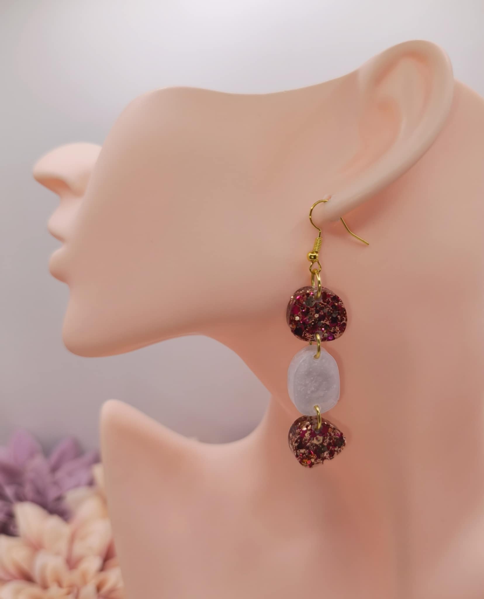 Douceur et fantaisie se mêlent dans ces boucles d’oreilles aux reflets romantiques et colorés ​💗​